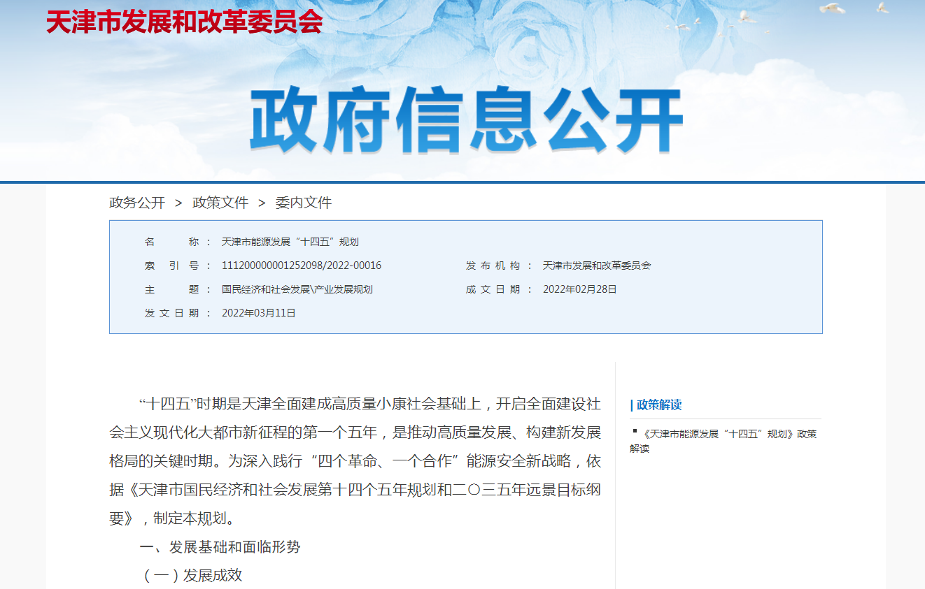 天津市在全國(guó)率先提出“打造能源革命先鋒城市”目標(biāo),推動(dòng)全市能源高質(zhì)量發(fā)展,為經(jīng)濟(jì)社會(huì)發(fā)展提供堅(jiān)強(qiáng)能源保障。加快推進(jìn)傳統(tǒng)化石能源清潔高效利用,大力發(fā)展新能源和可再生能源,到2025年,全市非化石能源裝機(jī)超過(guò)800萬(wàn)千瓦,占總裝機(jī)比重達(dá)到30%左右。