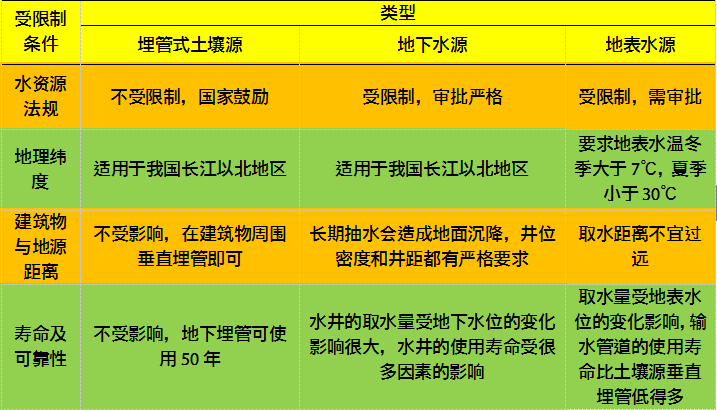 地大熱能專家介紹:地源熱泵空調(diào)系統(tǒng)的設(shè)計,主要包括兩大部分:一是建筑物內(nèi)的水環(huán)路空調(diào)系統(tǒng)的設(shè)計;二是地源熱泵空調(diào)系統(tǒng)的地下部分的設(shè)計,即地下耦合熱泵系統(tǒng)的地下熱交換器、地表水熱泵系統(tǒng)的地表水熱交換器,地下水熱泵系統(tǒng)的水井系統(tǒng)設(shè)計。下面我們對三種地源熱泵系統(tǒng)形式進行對比分析,如表1所示。