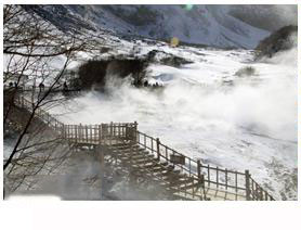 長白山聚龍泉溫泉風景這里也是欣賞長白山霧凇的最佳位置。由于水溫極高,可把自己與雞蛋、老玉米、火腿腸一起“下鍋煮”,會發(fā)出翻滾的開鍋聲,用不了多久就能吃到冰天雪地中的別致美味了。 |