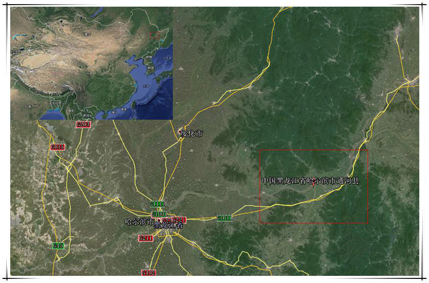 通河縣位于黑龍江省中部,小興安嶺南麓,松花江中游北岸,地理坐標(biāo)東經(jīng)128°7′30″—129°24′30″,北緯45°52′30″—46°37′30″之間。東與依蘭縣為鄰,西與木蘭縣毗鄰,南與松花江為界與方正、賓縣隔江相望,北以平頂山分水嶺為界與鐵力市、慶安縣接壤。通河全境東西長約89.7公里,南北寬約87公里,幅員面積5678公里。通河縣北部山區(qū),屬小興安嶺山脈。最高峰海拔1100米,一般海拔平均400-800米。最大坡度70°,溝壑峽谷多呈V型。成土母質(zhì)屬于基巖、沖積堆積物。其地殼厚度可達(dá)70公里,為上、下兩層,上層為花崗巖,由于富含硅和鋁,又稱硅鋁層。下層為玄武巖,富于含硅和鎂,也叫硅鎂層。地殼表層因受大氣、水、生物作用,形成土壤層、風(fēng)化殼和沉積層,厚度介于0-10公里之間,占總面積的70%,中部丘陵和淺山區(qū),山勢平緩,峽谷開闊。一般平均海拔在200-500米之間,山頂坡度40°以上,坡降15°-20°左右。物理風(fēng)化作用較強(qiáng),成土母質(zhì)屬于殘積物和坡積物。丘陵屬于中山區(qū)。南部與山前臺地緊緊相連,分布在山區(qū)外圍,呈海拔200米左右丘陵,下屬寬闊小平原,土質(zhì)肥沃,都已開墾成耕地,丘陵上適宜造林和發(fā)展果樹生產(chǎn)。丘陵下部往南延伸趨近于松花江北岸屬于山前臺地高平原區(qū)。