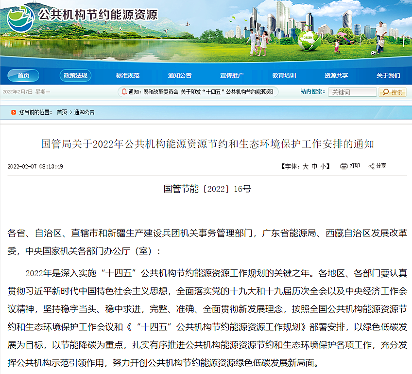 地大熱能清潔低碳能源網(wǎng)訊:國(guó)管局發(fā)布《關(guān)于2022年公共機(jī)構(gòu)能源資源節(jié)約和生態(tài)環(huán)境保護(hù)工作安排的通知》。通知指出,全面落實(shí)節(jié)能降碳有關(guān)工作: