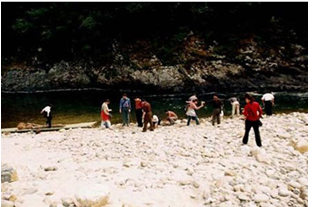 江西熱水洲溫泉風(fēng)景熱水洲溫泉長(zhǎng)100-150米,寬10-30米,水溫度64℃以上,日流量2000噸,沿河堤、河床呈泉群帶狀分布。溫泉主要出露于河床漫灘上,由深部斷裂帶熱水上升而成,儲(chǔ)存、運(yùn)移于河床卵石層中。 |