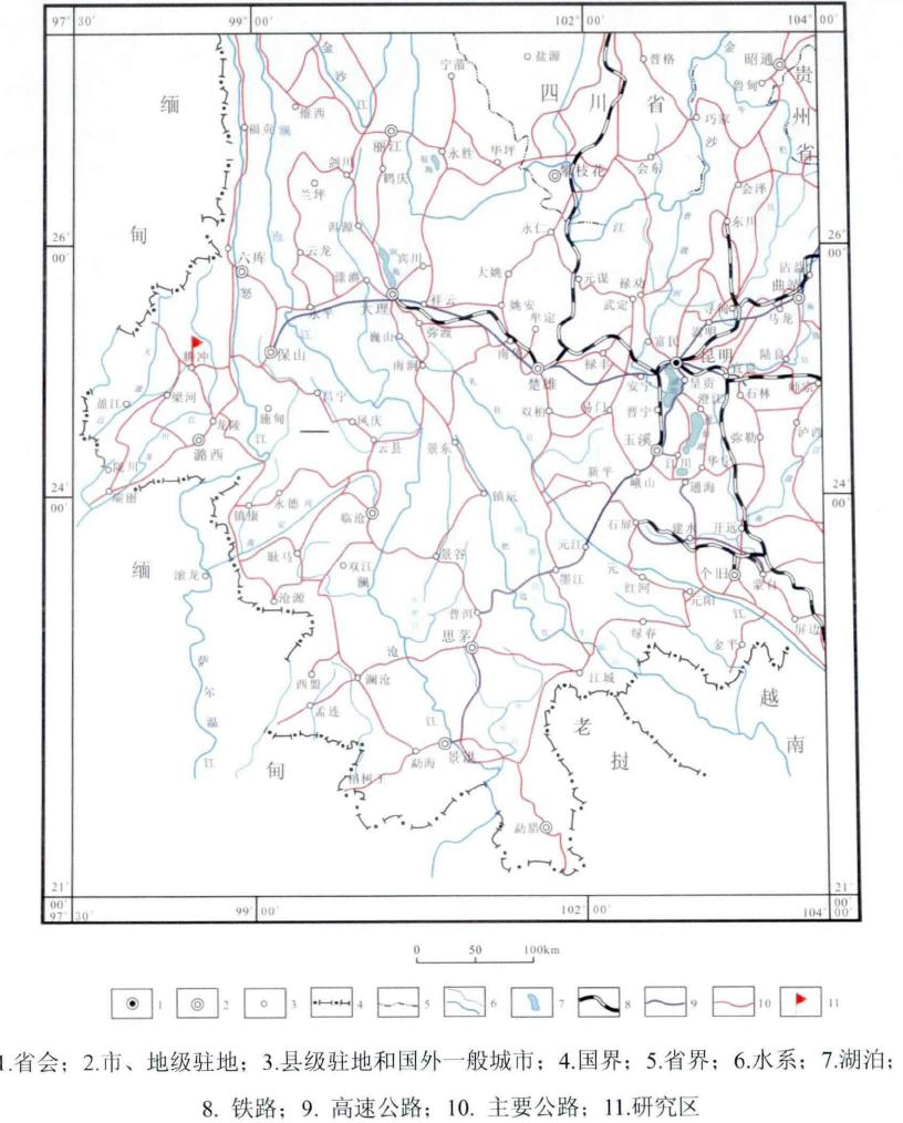 騰沖縣位于高黎貢山西側(cè),總體地勢(shì)北高南低,山脈走向?yàn)楸睎|一西向及南北向,與區(qū)域構(gòu)造線(xiàn)基本一致。高黎貢山與怒江并列向南蜿誕,高黎貢山峰脊一線(xiàn)海拔多在3000m以上;而怒江河谷海拔僅500—900m,區(qū)內(nèi)最高峰為高黎貢山中段的大腦子,海拔3780.9m;最低點(diǎn)為盈江縣拉沙河與穆雷江交匯處,海拔僅210m;最大高差達(dá)3570.9m,一般高差在400—2000m之間,屬中高山中一深切割地區(qū)。縣城西側(cè)為高中山地貌景觀(guān),谷深坡陸;東側(cè)為中山山地稍為平緩,但切割密度較大;中部為斷陷谷地,河流階地發(fā)育,地勢(shì)平坦開(kāi)闊。騰沖地區(qū)構(gòu)造運(yùn)動(dòng)活躍、斷裂構(gòu)造發(fā)育、巖漿活動(dòng)頻繁、火成巖分布廣泛、新生代火山活動(dòng)、現(xiàn)代水熱活動(dòng)異常強(qiáng)烈,溫沸泉眾多。