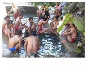 云南躍進橋溫泉風景澡堂會的熱水最高達70-80度,由于是自然溫泉,含有多種礦物質(zhì)和稀有金屬元素,對人體的某些疾患有特殊的療效,因而慕名前往洗浴的客人遠到西藏也不乏大有人在,只是現(xiàn)在的時間主要是周邊的人們,到三、四月份就會有更多遠方的西域者陸續(xù)到來。不少洗浴者一洗就是十天半月,更有甚者能洗兩到三個月,目的是治病,據(jù)說還真有不少人治好了疑難雜癥,不然的話怒江“澡堂會”怎么會在印度、尼泊爾、巴基斯坦、新加坡、馬來西亞甚至美國等地聞名遐邇。 |