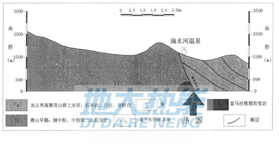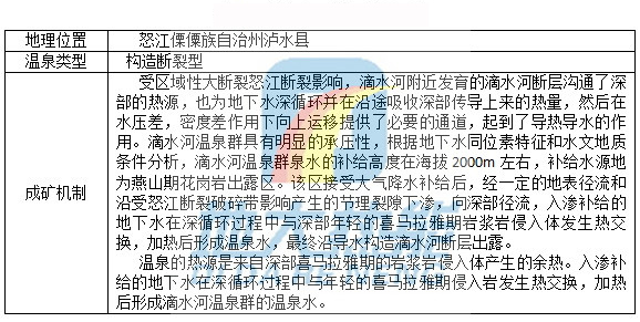 云南滴水河溫泉風景出露區(qū)地形地貌特征主要受滴水河河流侵蝕的影響,為河流侵蝕地貌類型,其出露位置主要受滴水河斷層控制。 |